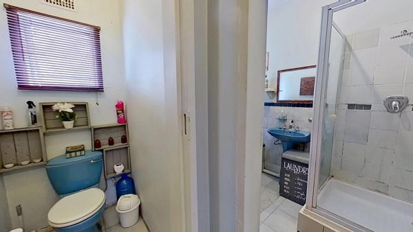 The bathroom has a shower, bath and basin, with the toilet being sepaarte.