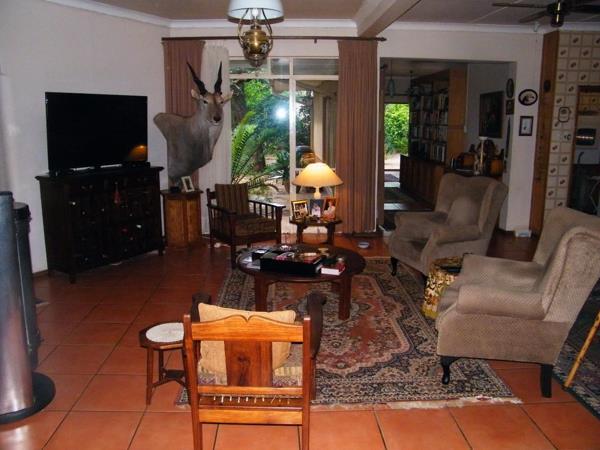 A magnificent well built and well maintained house consisting of a large entrance hall leading on to a huge formal lounge and second informal lounge, a separate formal dining room. A huge kitchen, very well fitted with solid white oak cupboards a separate scullery area and a special room for fridges.Two large family rooms for entertaining and television. Study room, three bedrooms each with own bathroom, all fitted with white oak built-in cupboards. A special storage room for gun safes and other valuables. A very large swimming pool and outdoor braai facility. This is a very large property with a lot of potential for new development. A large portion of the grounds have been divided into separate sell-able stands.