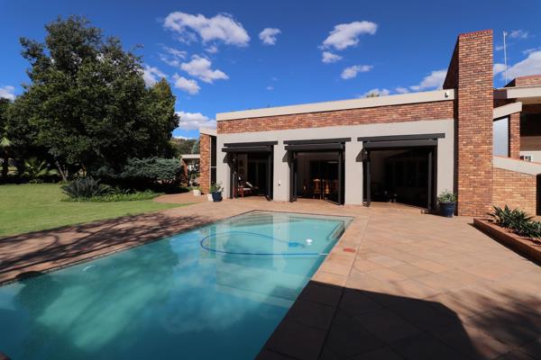 The relaxing outdoor area combines indoor and outdoor living graciously and borders a pristine swimming pool.