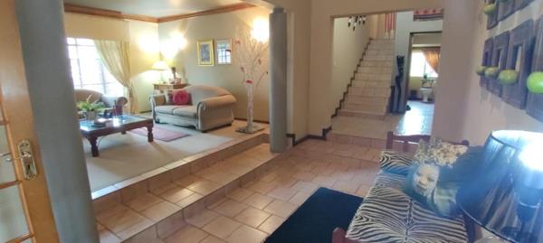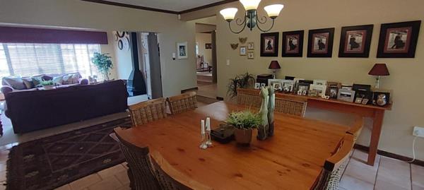 A spacious family room and dining room, with the dining room opening up to the patio area with a private courtyard and braai area.