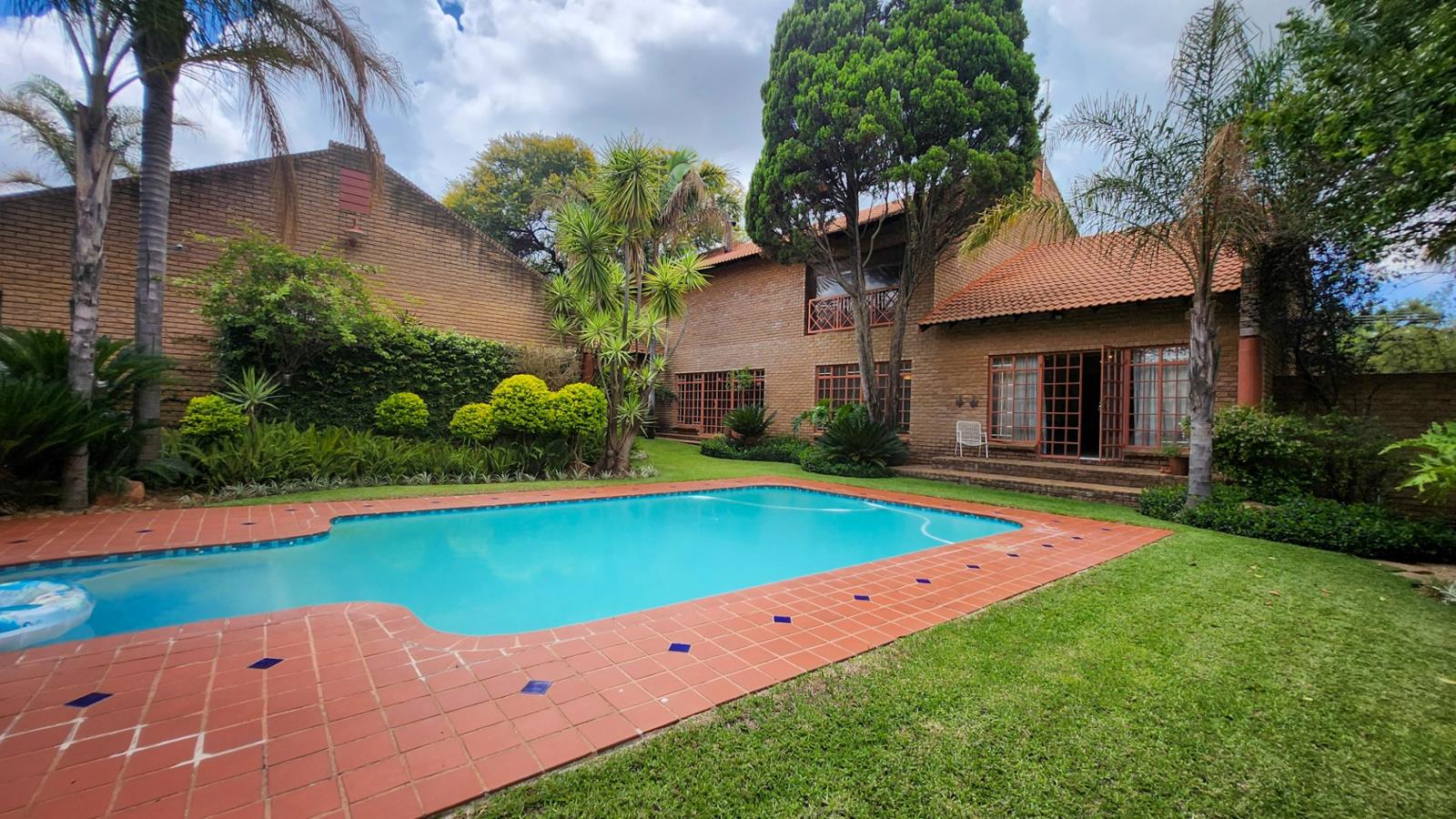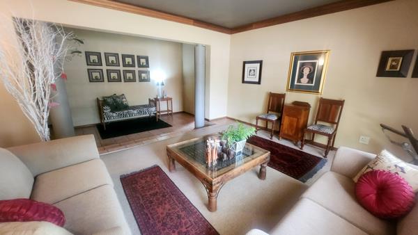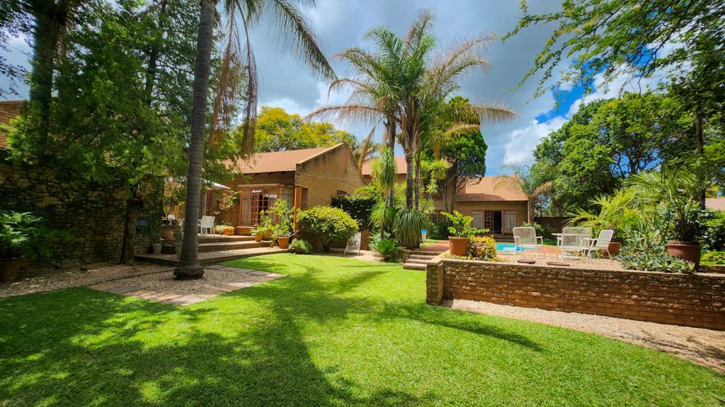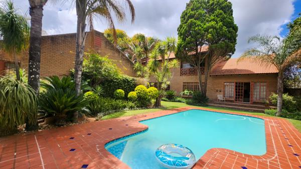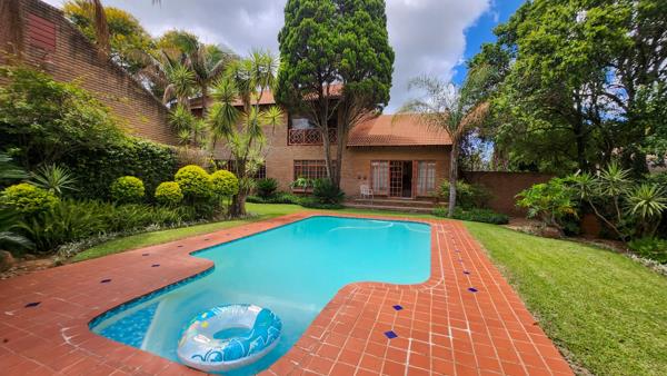 The home is designed for both everyday living and entertaining, with built-in braais and multiple balconies that overlook a lush, landscaped garden. The sparkling swimming pool is the highlight of the outdoor space, creating a private oasis for family fun or tranquil downtime. With four garages, there is ample parking and storage, catering to both convenience and security.