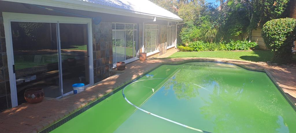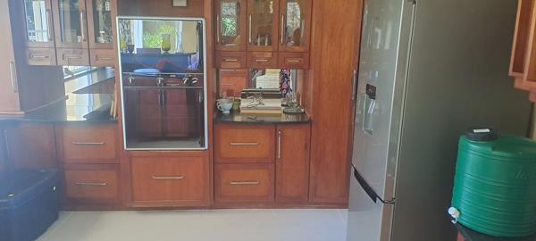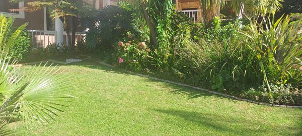 Covered patio with a built in braai overlooking the terrific well maintained garden.