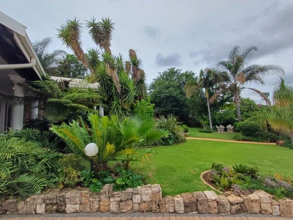 Step outside to a large stoep area with a built-in braai, perfect for gatherings. A sparkling swimming pool invites relaxation, while the beautifully landscaped garden, equipped with irrigation, adds to the homes serene ambiance. An outside toilet adds convenience to the outdoor space.