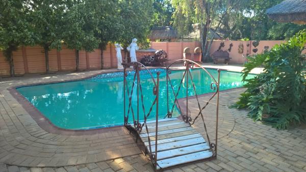 The main house features four spacious bedrooms, two bathrooms, a guest toilet, and multiple living areas, including a lounge, an open-plan kitchen, dining room, and TV room. A separate scullery, study, and laundry room add to the home''s practicality. The entertainment areas are exceptional, boasting a lapa with a built-in braai, bar, and jacuzzi, as well as a larger outdoor lapa with another built-in braai. A sparkling swimming pool completes the perfect outdoor setting.