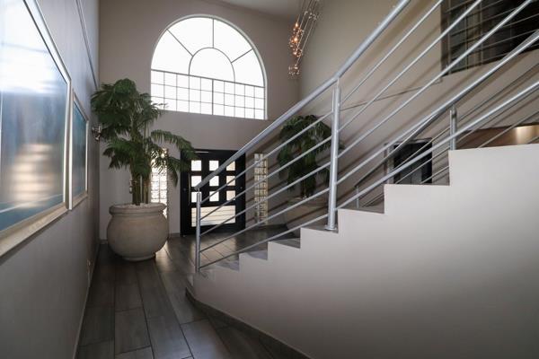 Step inside to be greeted by an impressive staircase that sets the tone for the generous proportions throughout the home. The house boasts five spacious bedrooms one currently used as a playroom, two dedicated studies with built-in cupboards, a gym area, and an inviting open-plan living space. Designed for effortless entertaining and comfort, the living area includes a bar, built-in braai, and a jacuzzi, ideal for hosting friends and family all year round.