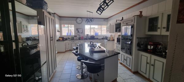 The extensive kitchen is fitted with ample cupboards, a gas hob, electric oven, and a separate scullery of comfortable size perfect for everyday functionality.