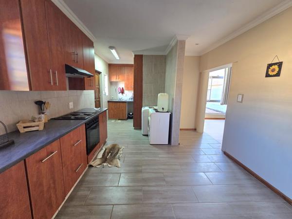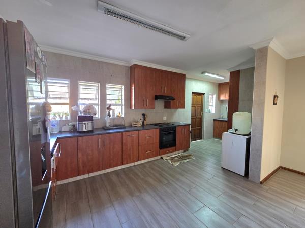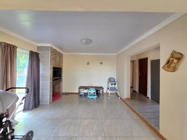 The home features a spacious open-plan TV room & dining area with a built-in braai - Perfect for gatherings & entertainment with family and friends. Both areas open out to the backyard.