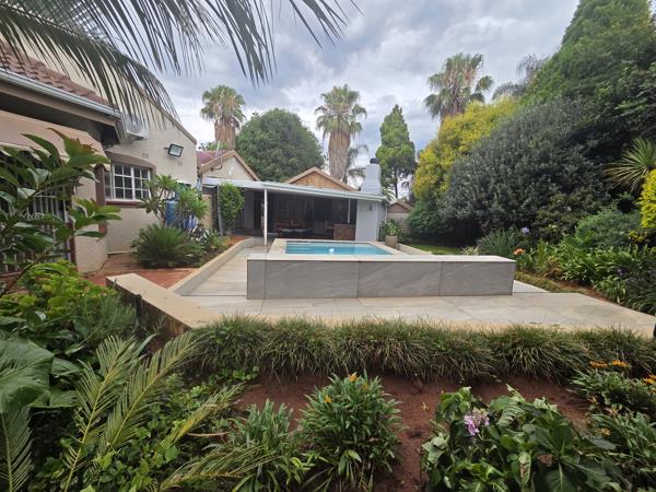 A comfortable TV room sits beside the kitchen, connecting smoothly to the outdoor entertainment area, complete with a built-in braai and bar, where you can enjoy tranquil views of the sparkling swimming pool and lush, irrigated gardenperfect for effortless hosting or quality family time.
