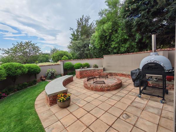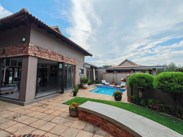 The entertainment room is a standout feature, with a built-in bar and braai, making it an ideal space to relax and enjoy with friends and family. Step outside to discover a stunning swimming pool surrounded by lush greenery and cozy boma, perfect for evening gatherings.