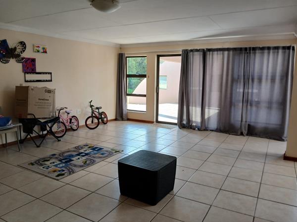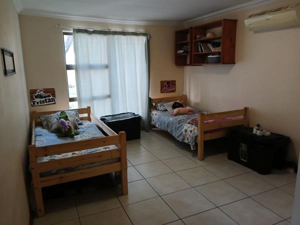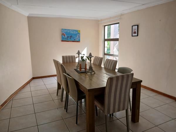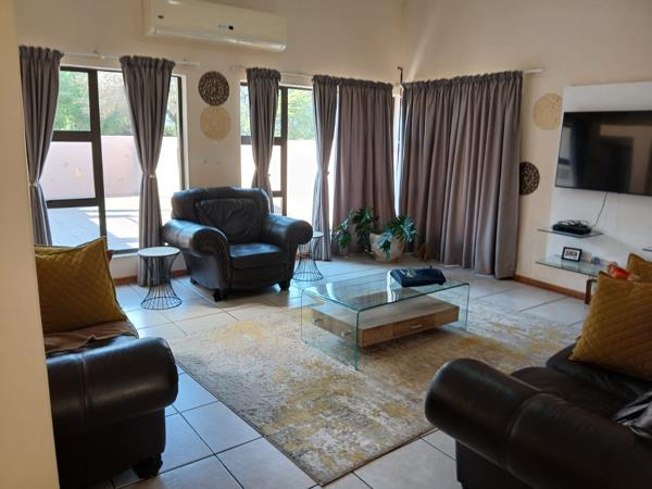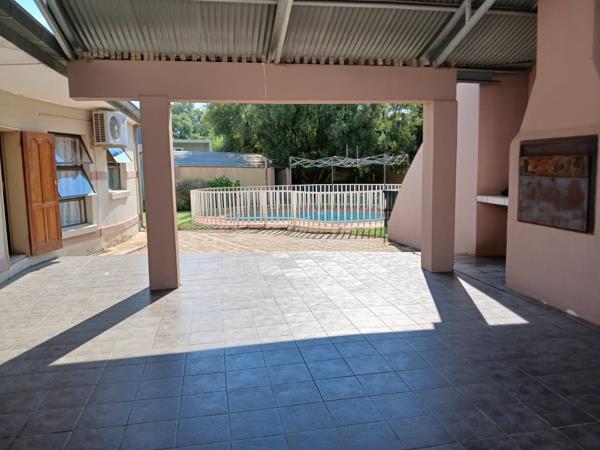 The house consists of three bedrooms, three bathrooms, a large open-plan lounge, a dining room, and a TV room that can also be used for functions or meetings. It has two large air conditioners with high ceilings and lots of light that lead from the sliding door to the outside braai and swimming pool area.
