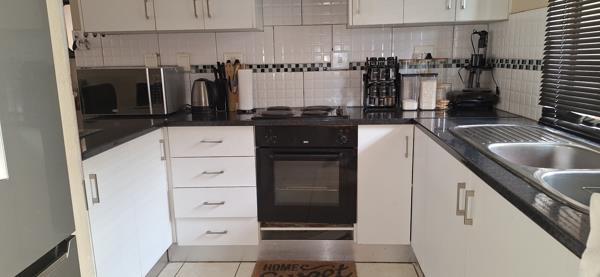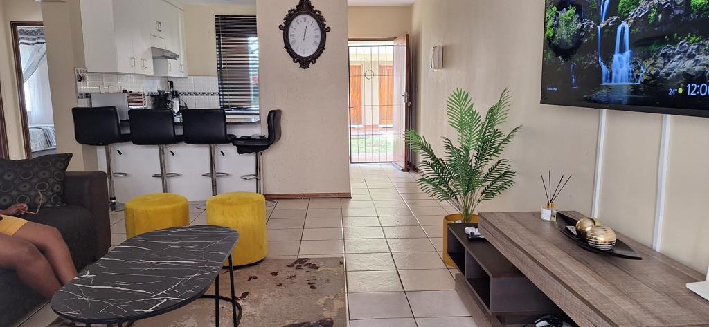 Neat 3 bedroom, 2 bathroom townhouse for sale in security complex. Walking distance from Magalies Mall. Access gate to complex with security guards. The guards are patrolling the complex during the day and night.