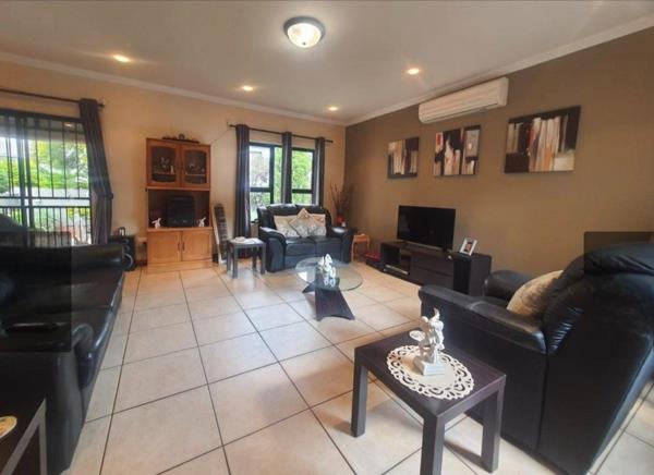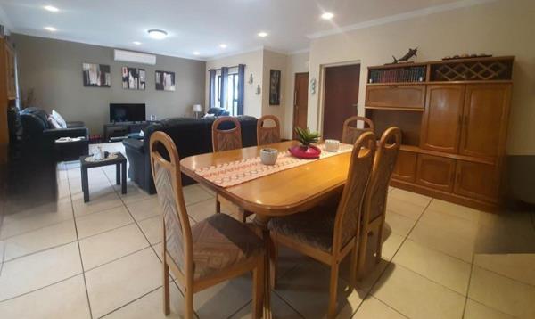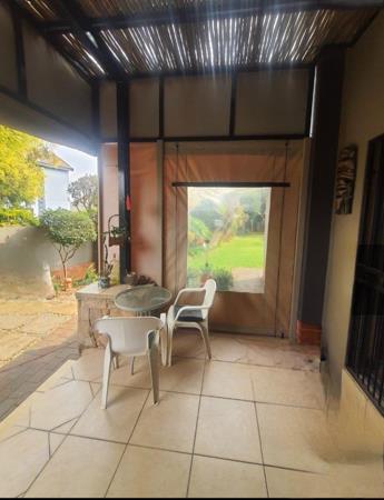 Step inside to a bright, open living and dining area that leads to a covered patio with a built-in braai. The patio is enclosed with canvas and overlooks a green, pet-friendly gardenperfect for relaxing or entertaining.