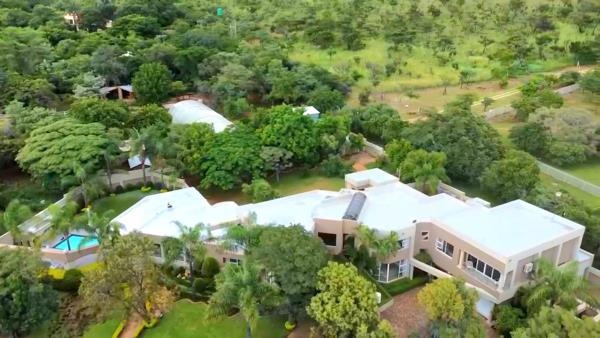 Additional highlights include five garages, air conditioning throughout, a strong borehole, seven water tanks, two staff quarters with bathrooms, and ample storage space.
