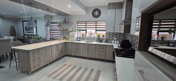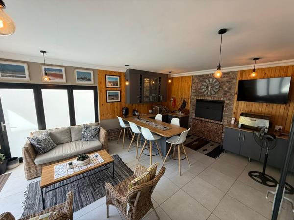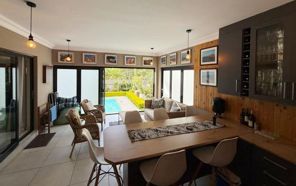 Enter into a beautifully curated open-plan living space where the lounge, dining area and designer kitchen blend seamlessly. A separate scullery and laundry ensure a clutter-free environment, while expansive aluminium doors open onto an exquisite entertainment terrace. Complete with a built-in braai, bespoke bar area and generous seating, this outdoor haven flows effortlessly to a sparkling pool the perfect backdrop for stylish gatherings and serene sunset evenings.