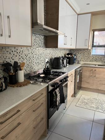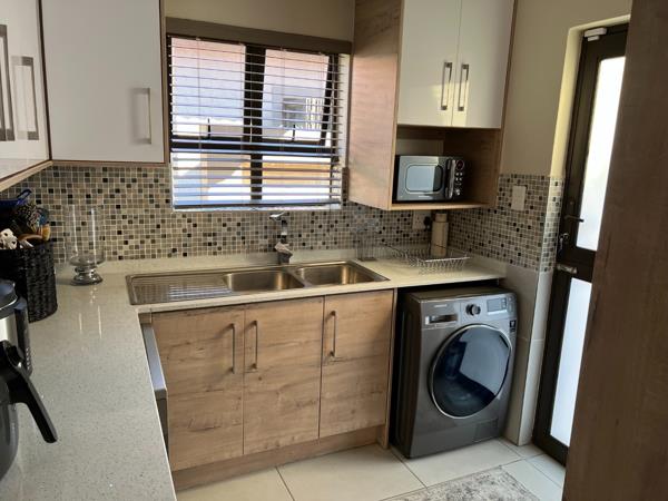 L-shape open plan lounge fitted with a build-in braai and aircon, dining, kitchen has a gas hop and small scullery.