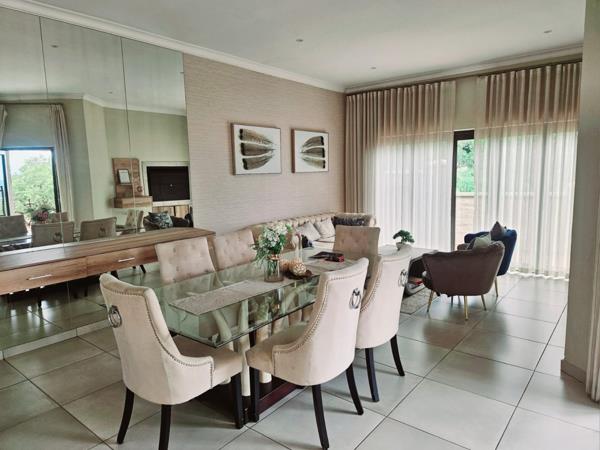 The dining area flows to a entertainment area with a built-in braai, perfect for entertaining guests.