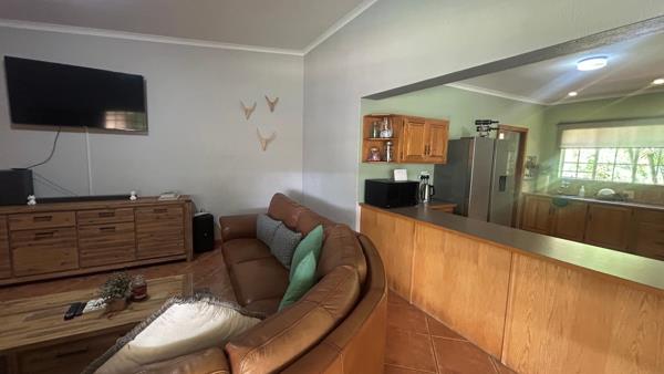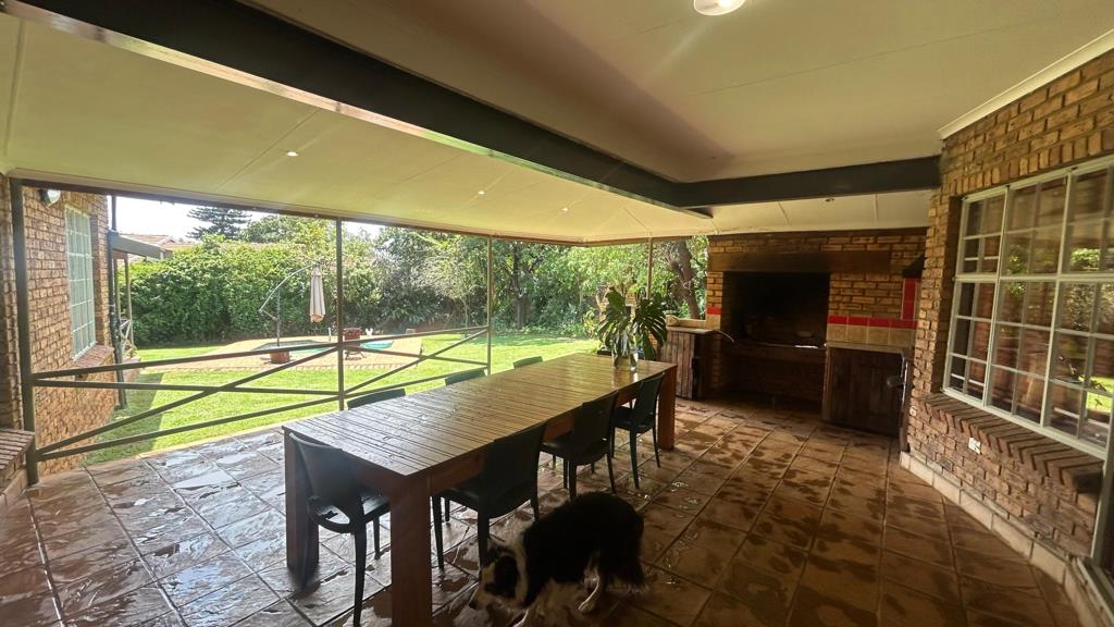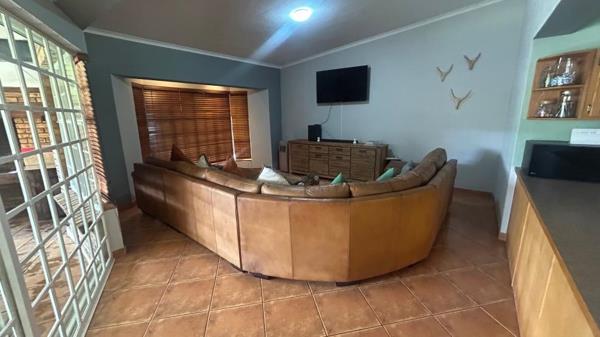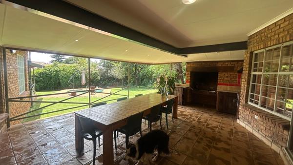 4 spacious bedrooms, study room, 2 full bathrooms, spacious living areas, lovely patiostoep with built-in braai, gasbraai plus extra outside braai! All this within tranquility that surrounds the garden and lovely pool.