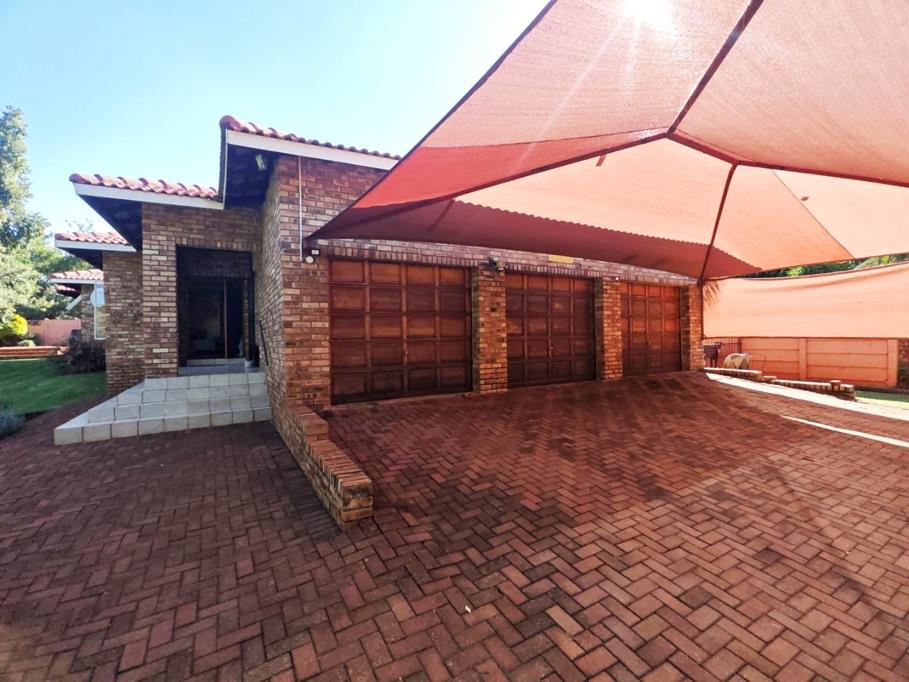 Parking is well catered for with three garages and three covered parking bays. The property is completed by a lush green garden.