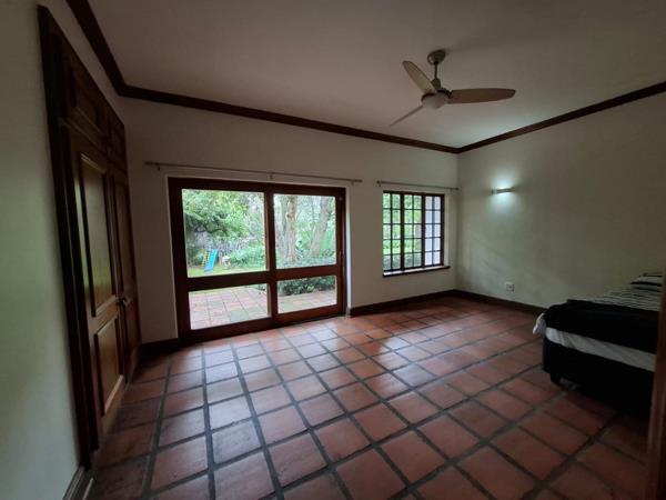 Garden cottage includes a spacious livingsleeping area, kitchen and bathroom. Own covered patio with build in braai and great views over the garden, pool and tennis courts. Ideal for guests or an extra income.