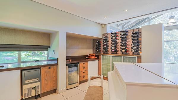 The gourmet kitchen is a standout feature, fitted with granite countertops, built-in fridges, and a cold room, ideal for those who love cooking and hosting. Just outside the kitchen you will find a peaceful garden nook, perfect for morning coffee or quiet reading.