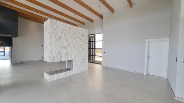 The house welcomes you with spacious open-plan living areas that flow effortlessly into a beautiful entertainment space, creating the perfect setting for both relaxed family living and sophisticated entertaining. A gas fireplace adds warmth and a touch of luxury to the living area.