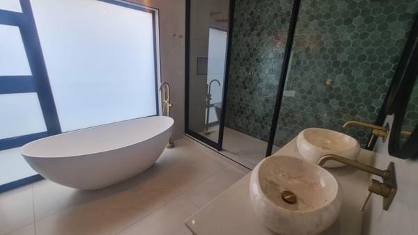 The ultra-modern kitchen is fitted with high-end finishes and offers both a pantry and separate scullery, combining practicality with sleek design.
