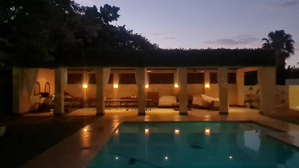 Step into a stunning outdoor oasis featuring a sparkling blue pool, perfect for relaxation and hosting unforgettable gatherings. The space is thoughtfully designed to cater to both intimate moments and grand celebrations.