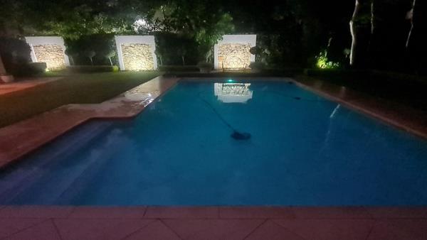 Strategically placed lights illuminate the breathtaking landscape, enhancing the elegance of this exceptional family home and making evenings outdoors truly magical.