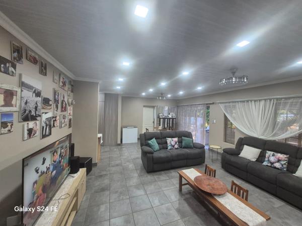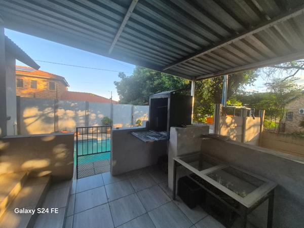 Step outside and enjoy a covered entertainment area with a built-in braai, overlooking a sparkling swimming poolideal for hosting guests or unwinding with family. The property also offers a double garage, a large carport for two vehicles, and a 2500L JoJo tank with pressure pump. Safety and security are top priorities, with an alarm system, a fully enclosed pipesteel yard, and two electric gates ensuring peace of mind. With its low-maintenance garden and move-in-ready condition, this home is a rare find in an upmarket areaperfect for families or professionals seeking quality living.