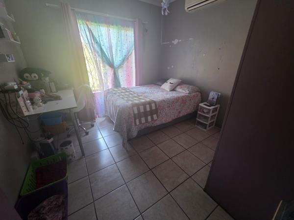 Tucked away in a panhandle, this duet property is a great starter to become a first time home owner. Three rooms, two bathrooms, open plan kitchen and living and dining area. Double carport for your vehicles. Small lapa where you can have your weekend braai. Small back yard with watertank.