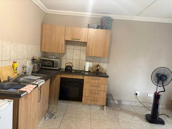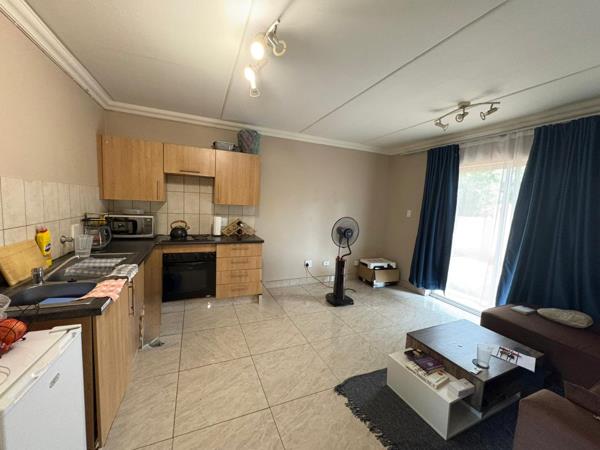 The apartment features two spacious bedrooms with built-in cupboards, a neat family bathroom, and a bright open-plan lounge and dining area that creates a welcoming living space. The fitted kitchen offers ample cupboard space and practical layout for everyday use.