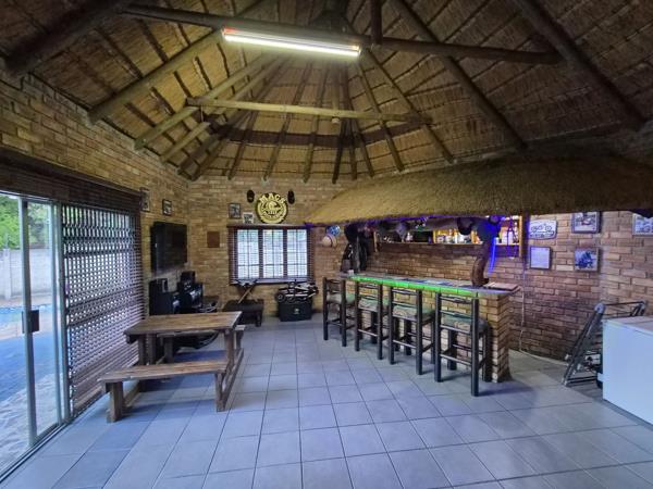 Cozy lounge walking into large entertainment lapa with bar