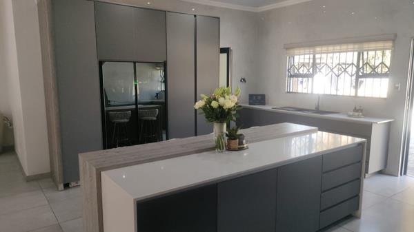 The open-plan kitchen, lounge, and dining area offer a contemporary and inviting space for gatherings. A flatlet adds versatility, ideal for guests or additional living space.