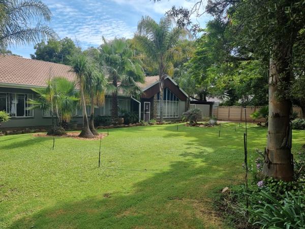 Nestled in the desirable Protea Park, Rustenburg, this expansive 4-bedroom family home offers a tranquil suburban lifestyle. The property boasts an impressive 1884 sqm erf, featuring a meticulously maintained, lush tropical garden with mature trees and an irrigation system, creating a private and serene outdoor sanctuary. The charming single-story residence, with its distinctive A-frame architectural feature, presents excellent kerb appeal.