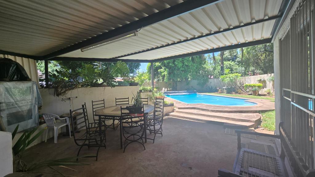 TV or games room has plenty space even for n pool table or bar. Large doors open towards the braai area and a massive sparkling pool.