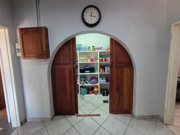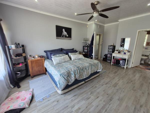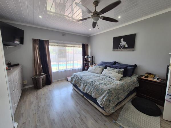 Entertainment area with a built-in braai creates the perfect setting for gatherings, while the large swimming pool and spacious yard add to the relaxed outdoor lifestyle.