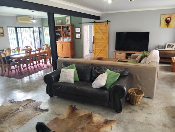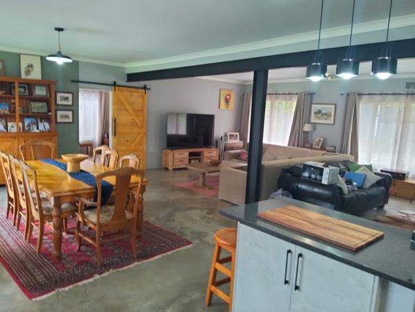 Step inside and you are greeted by a flowing layout that connects the lounge, dining area, and kitchen into one harmonious living space. The kitchen is a chefs delight, featuring a gas stove, pantry, scullery, and built-in cupboards, complemented by an inverter and solar panels that ensure energy efficiency. Exit the kitchen and you enter a well equipped entertainment room with built-in braai. Exit the entertainment room into the well manicured irrigated garden and you will find a sparkling pool, fire pit and an outside braai area perfect for entertaining or enjoying quiet family moments.