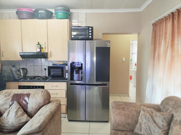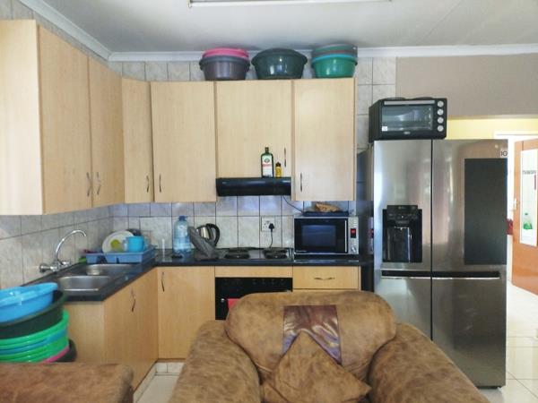 The bedrooms are spacious, complemented with fitted cupboards. Spacious open plan kitchen and Lounge, Full Bathroom.