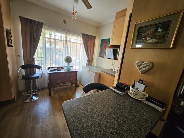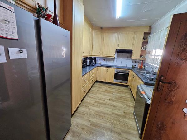The property features a well-maintained main house with 3 spacious bedrooms, including a main suite with an en suite bathroom and ample cupboard space. The house also includes a second full bathroom, a beautifully planned kitchen, and a versatile entertainment room with a jacuzzi. Outside, you''ll find a thatched lapa nestled in a private, manicured garden, a separate laundry area, double garage, and additional carports.