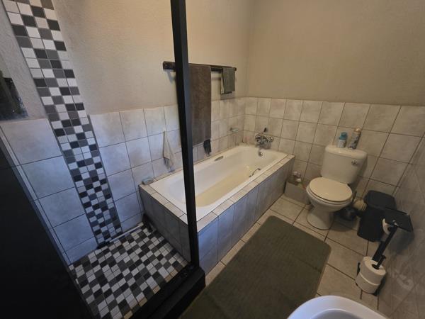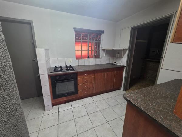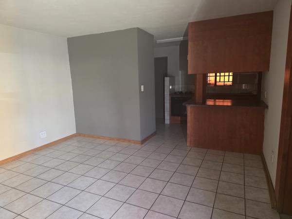 The garage is converted into an entertainment area with a bar. The unit is low maintenance on the outside. One parking area, but the garage can easily be converted back into a formal parking space for your vehicle. Walking distance to Rustenburg CBD and transport access.