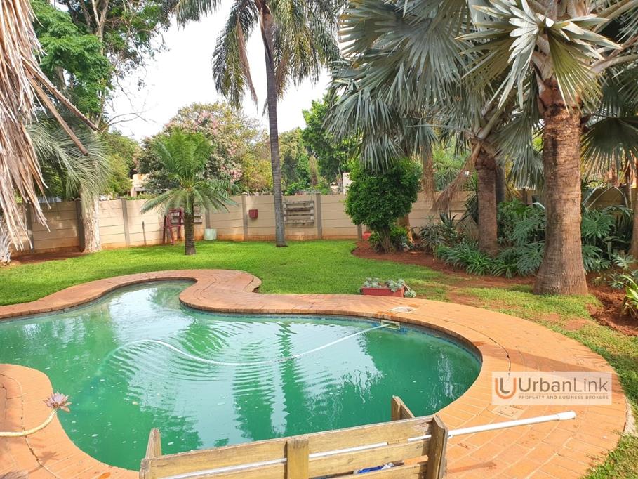 This family home offers comfortable living with three bedrooms, the main bedroom has an en-suite bathroom and a walk-in study that also has direct access from the closed garage, ideal for a home office or private workspace. The home features two bathrooms, a spacious kitchen, and a generous open-plan living and dining area with a built-in bar that flows seamlessly to the braai, lapa, and swimming pool area. A beautiful, established garden enhances the outdoor living experience, making it perfect for family time and entertaining. Additional features include domestic quarters, a water tank, undercover parking, and a convenient location close to schools and shopping centres, making this an ideal family home.