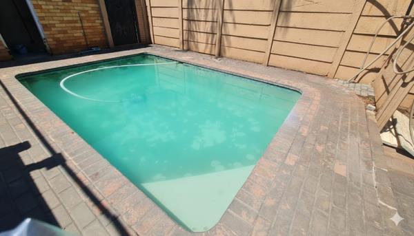 Security is a major benefit, with burglar bars, security doors, and a secure complex that includes a communal swimming pool. The complex also has a borehole for added peace of mind.