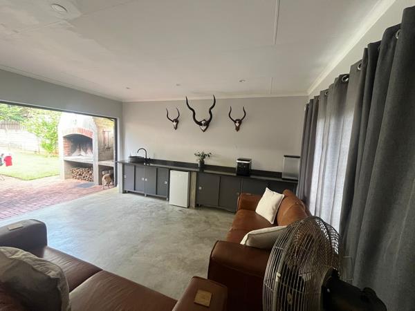 This home features four generously sized bedrooms, a dedicated study ideal for working from home, and modern bathrooms designed with comfort in mind. An impressive entertainment area with a built-in braai creates the perfect setting for hosting family and friends.