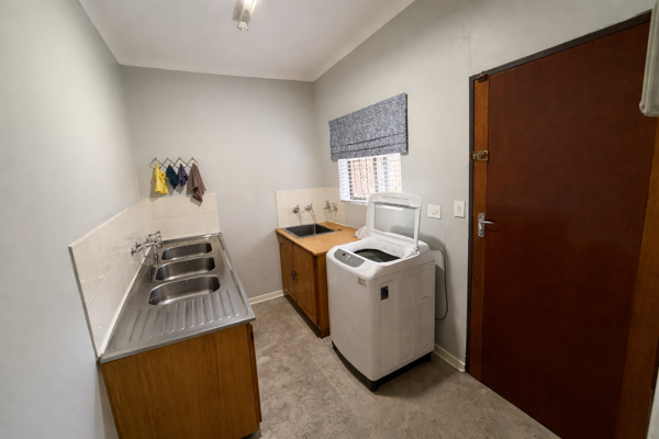 This property is equipped with excellent water infrastructure, including two boreholes one with a pump, a 5,000L water tank, and an irrigation system to keep the garden in top condition year-round.