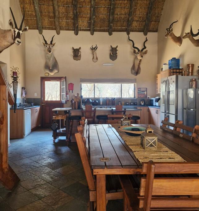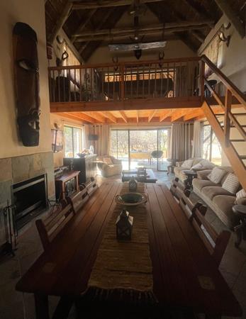 Welcome to this charming bush retreat, tucked away in the sought-after Bushwillow Conservation Estate. This unique home combines rustic charm with modern comforts, offering an inviting lifestyle surrounded by nature. The property features three bedrooms and two bathrooms, including a full en-suite, a spacious lounge area perfect for both relaxation and entertaining, and a versatile loft or playroom complete with a pool table. From the loft, step out onto a private upstairs balcony where you can soak in breathtaking sunsets and serene bush views. For those warm summer days, an outdoor shower adds a refreshing touch, while the functional pantry ensures extra kitchen storage. The traditional thatch roof, recently redone, enhances the homes character while ensuring durability. Outdoor living is a highlight here, with an expansive entertainment deck, a cozy fire pit for starlit evenings, and uninterrupted views of the bush, where wildlifeincluding the delightful bush babiesmake frequent appearances. A convenient carport completes the home.