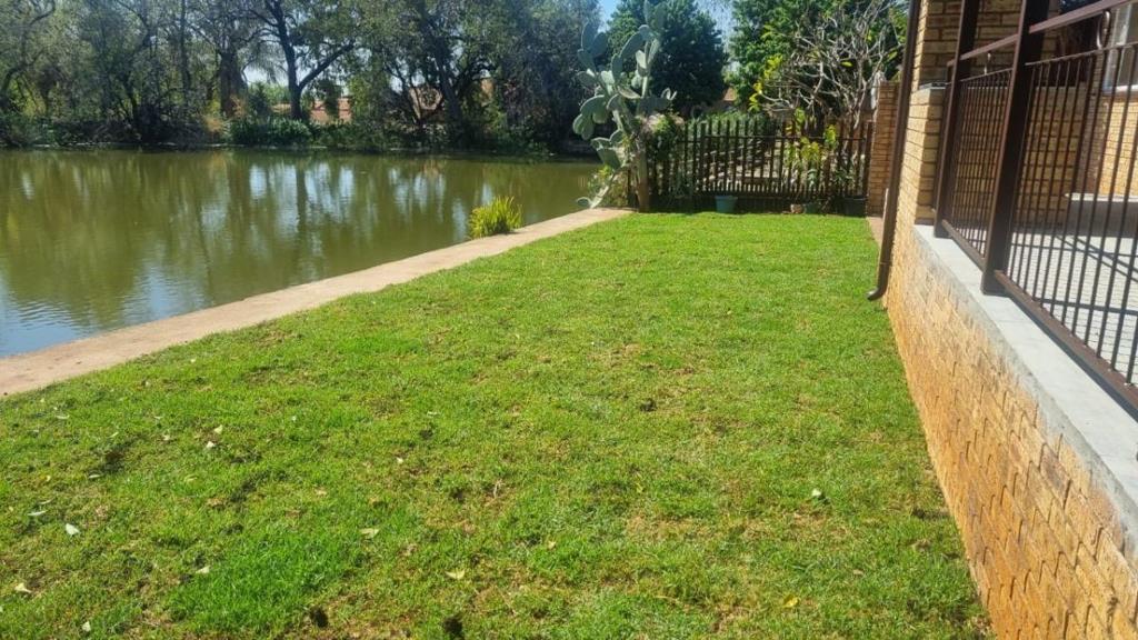 The house is positioned on the edge of a small dam, providing a perfect setting to enjoy sunsets and braais. The interior features a stunning open-plan kitchen, dining, and lounge area. There are four well-sized bedrooms and two bathrooms, including a main en-suite.