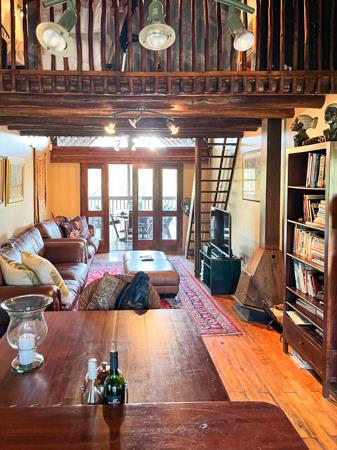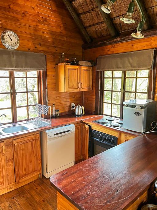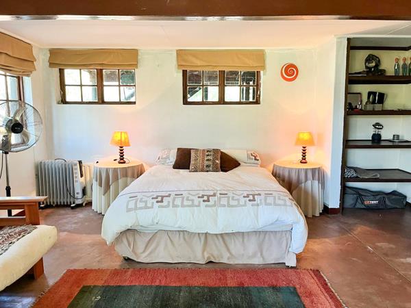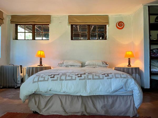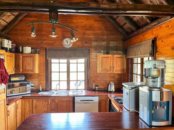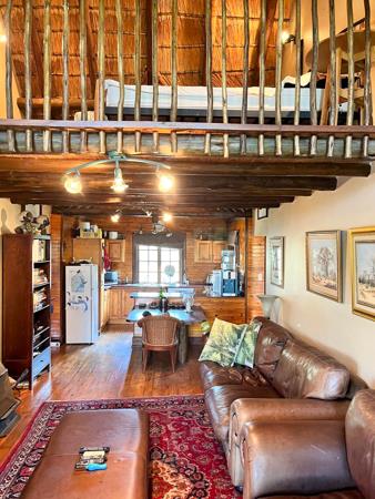 The home itself is designed for relaxed living and rustic charm. The open-plan lounge and kitchen form the heart of the home, flowing out to a spacious balcony where uninterrupted views across the dam and bushveld can be enjoyed. The property offers two comfortable bedrooms along with a versatile loft space that can be used as a third bedroom, home office or cosy retreat. There are two well-appointed bathrooms, along with a private guest suite that is ideal for family stays or visiting friends. Additionally, a separate domestic room with its own bathroom adds further convenience.