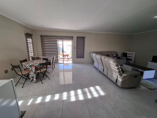Extra spacious open plan living area boasting lounge, dining room and kitchen opening to a spacious covered patio.