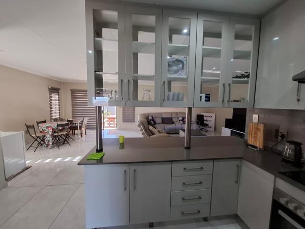 This beautiful four-bedroom house is situated in a sought-after security estate. 24 Hr access controlled.