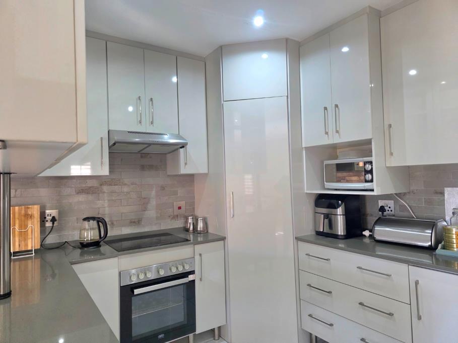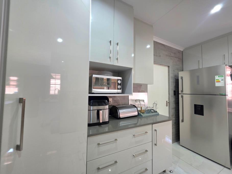 A contemporary kitchen with high-gloss cabinetry and quality finishes.